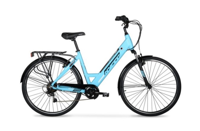 Puedes encontrar en Walmart esta bicicleta de paseo con asistencia de pedal eléctrico, con ruedas de 26″. Está disponible en color turquesa, que tiene un precio rebajado de $398 dólares. Su precio de lista es de $640 dólares, lo que significa que ahorras $242 dólares.