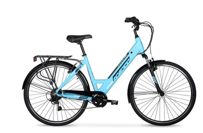 Puedes encontrar en Walmart esta bicicleta de paseo con asistencia de pedal eléctrico, con ruedas de 26″. Está disponible en color turquesa, que tiene un precio rebajado de $398 dólares. Su precio de lista es de $640 dólares, lo que significa que ahorras $242 dólares.