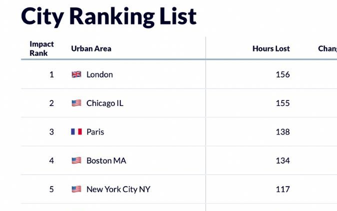 Estados Unidos también tiene ocho de las 25 peores ciudades del mundo para el tráfico y 19 de las peores 25 en América del Norte y 5 de 10 en el mundo con el peor tráfico.