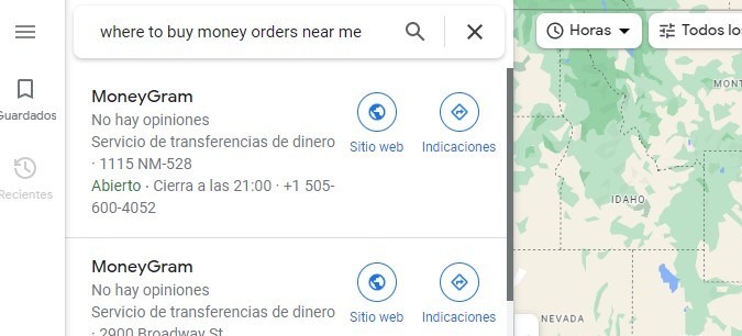 Otra manera de localizar donde puedes comprar un money order es sabiendo las tiendas en donde lo puedes comprar, entonces, pones el nombre de esa tienda en el buscador de Google Maps y lo mismo, te arrojará las más cercanas.