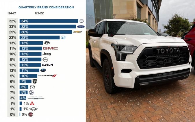 El aumento de dos puntos porcentuales en la preferencia de los consumidores sobre el cuarto trimestre de 2021 le permitió a Toyota desbancar a Ford, que le había arrebatado el No. 1 en el cuarto trimestre de 2021 por primera vez desde 2015, según el más reciente Kelley Blue Book Brand Watch Report™.