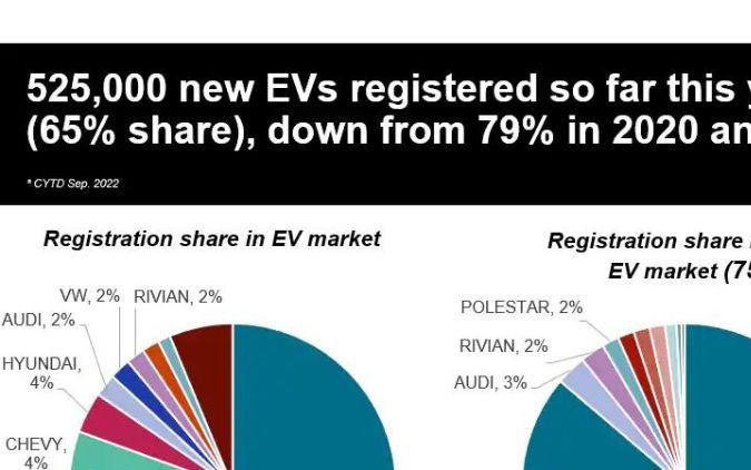 Según el más reciente reporte de S&P Global Mobility, Tesla acaparó 65% de las ventas en Estados Unidos, donde se vendieron 525,000 vehículos eléctricos – casi 340,000 de Tesla -, durante los primeros 9 meses de 2022.